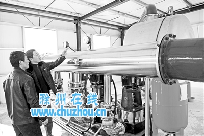 从自来水管道里抽来水,经稳流罐进入加压泵,现在就是见证奇迹的时刻:加压泵将原本只能升到10米高的水,一下子升到了50米,滁城城东工业园城北片区实现了用水无忧。这就是刚建成的供水加压站的神奇魔力。