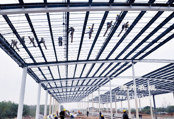 建设者们正在京沪高铁滁州站搭建站台钢结构雨棚。(资料图)记者王家国摄