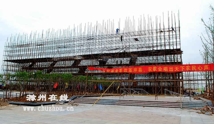 本网讯第四届中国农民歌会10月21日在滁州开幕,开幕式大型文艺演出将于当晚7时30分在市民广场(政务中心南侧)举行。9月20日,农歌会倒计时30天之际,特约记者杨兰、网友老菠菜探访工地,用镜头记录下开幕式舞台紧张建设的场面。