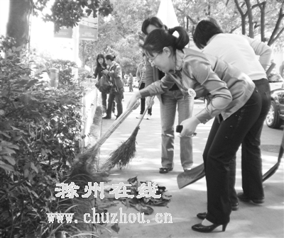 这些“临时环卫工”由琅琊区、南谯区、市妇儿活动中心的志愿者和市妇联机关人员组成,她们沿着琅琊大道、定远路和紫薇路,铲除垃圾、清扫路面、擦洗公物。一丝不苟地劳动,将“优美环境、优良秩序、优秀素质”的服务主题展示在路人面前。