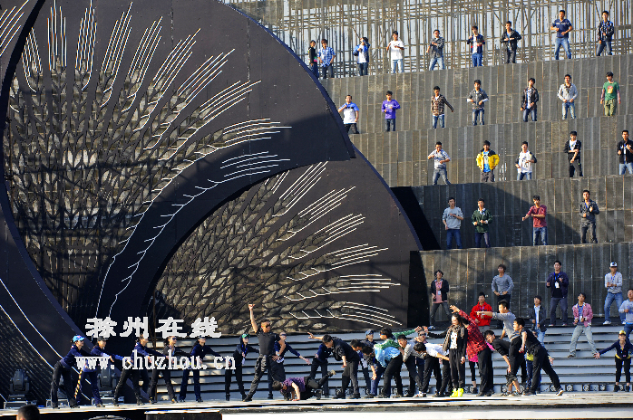 “手要伸直,表情要到位,注意队形,不要抢拍子……”还未走到主舞台,远远就听到导演的“命令”。记者了解到,9月中下旬,珠海华发艺术团、河北歌舞剧团、安徽艺术职业学院的舞蹈演员就已在滁城“安营扎寨”。阜阳丰收锣鼓、砀山唢呐、凤阳花鼓……眼下,演员的服装、道具已基本到位,近20个歌舞节目一个个“走台”,灯光、音响、舞蹈也在进行组合编排。