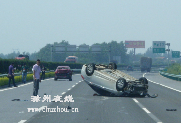 报料内容:近日,宁洛高速公路来安县境内曹庄收费站附近,一辆轿车被另一辆轿车顶翻。