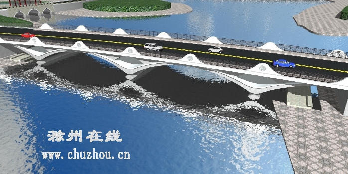 据了解,该桥名为东阳桥,按照四跨拱桥设计,全长100米,宽20米,其中机动车道宽16米,两侧人行道各2米。该桥按城市道路二级标准建设,双向4车道,设计时速30公里/小时,工程造价2500万元。