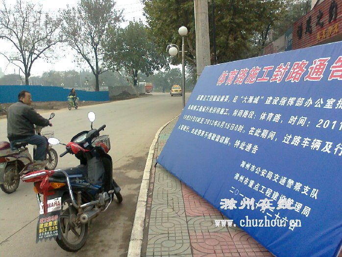 昨日上午,记者来到体育路看见,可能是清流路封闭施工,从明光路大桥分流至此的车辆较多,因此车流量相当大,窄窄的道路上不时有摩托车、电动车玩穿梭,险象环生。在通向面粉厂宿舍的小巷北侧一个硕大的蓝色封路通告牌旁,过往行人不时驻足。“也要封路,可是真的?”过路市民有些疑惑,一位工作人员向他们说明了详情。该人士同时告诉记者,封闭的是环城路与体育路交叉口东侧至原小东门菜场段体育路,约300米,封闭时间为2011年10月31日至2012年6月15日。