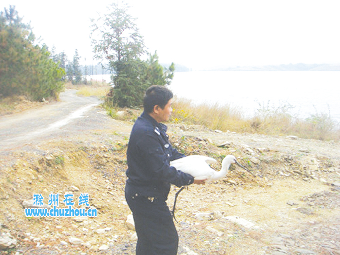明光市森林派出所民警告诉记者,救助大鸟的那对农民夫妻“非常非常的善良”,“无论如何不愿说出姓名”。当天下午,他们骑着一辆摩托车,“扑扑扑”地开进派出所,抱着大鸟直奔值班室。民警一眼瞧见,大鸟的羽毛洁白宛如披风、嘴巴漆黑长若长勺,可是精神萎靡。