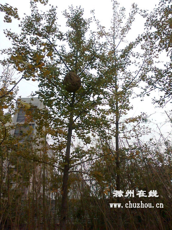 报料内容:前几天,我带着小孙子到琅琊区政府北侧的游园去玩,无意中抬头竟在一棵银杏树上看见个好大的马蜂窝。万一掉下来肯定会蛰伤人,太危险了。