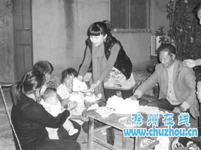黄庆明为明光市第四批大学生村官,来自福建省。10月31日是小黄24岁生日,为了让这位远道而来的姑娘安心工作生活,村民们特地为她买了蛋糕,并邀请到农家一起为她过生日。