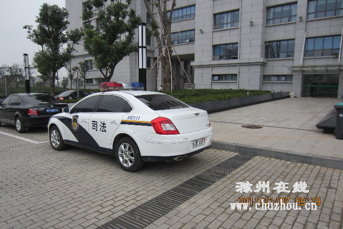 11月7日上午9时19分,明光市司法局皖MD111警车在市政务中心东楼门前乱停放。