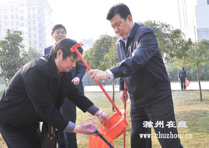 在中都大道,市委常委、副市长王图强,副市长汪建中、李树和市政府办的工作人员扛着铁锹将卫生死角的一堆堆建筑垃圾铲除并打扫干净。在丰乐大道,市人大常委会副主任秦钢昌和来自滁州职业技术学院、滁州农机校200多名志愿者捡垃圾,擦洗果皮箱、广告牌、文明标语等。