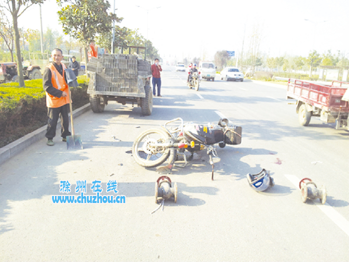 报料内容:近日,滁城南外环与创业路十字路口,一辆拖拉机与一辆摩托车发生碰撞。