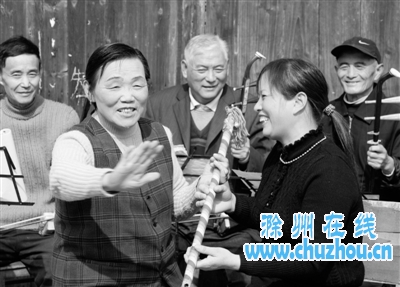 民舞“八朵云”的继承人正在给剧社里的年轻人教授技艺。“八朵云”已成为滁州市非物质文化遗产的传统乡土剧目。