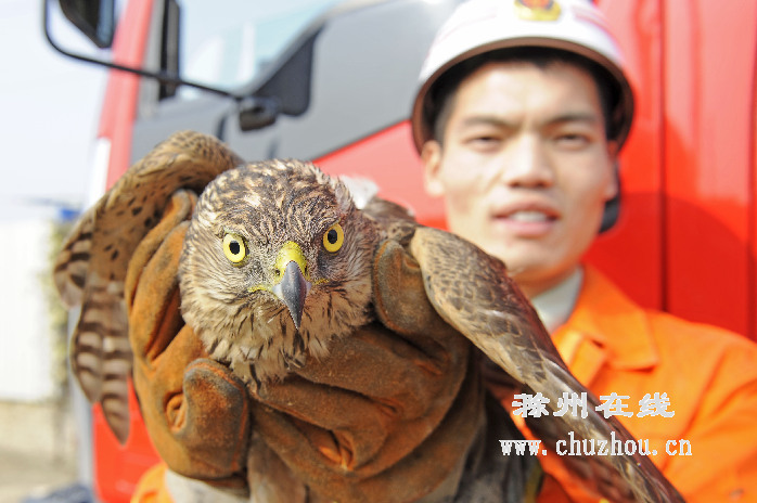 市消防支队琅琊中队和市园林处的工作人员第一时间赶到了现场,但由于杨树所在的路段十分狭窄,修剪车无法驶入,云梯也没有施展空间,最终只能采取消防队员爬树营救的方案。忙活到中午11点多,总算将这只倒挂在树上两天的鸟儿成功解救。发现自己又可以自由活动后,小家伙兴奋得直叫唤。经森林公安鉴定分析,这只鸟儿学名叫苍鹰,是一种中小型猛禽,属国家二级保护野生动物。