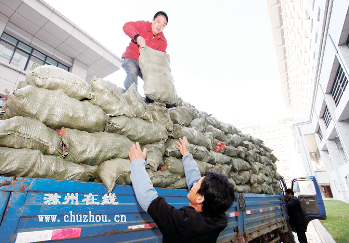 “我们下午装货,夜里赶路,25号一早还要把萝卜送到滁州职业技术学院、大滁办、联通公司。”上午10点半,等老杨他们卸下最后一袋萝卜后又匆忙的赶回泊岗。