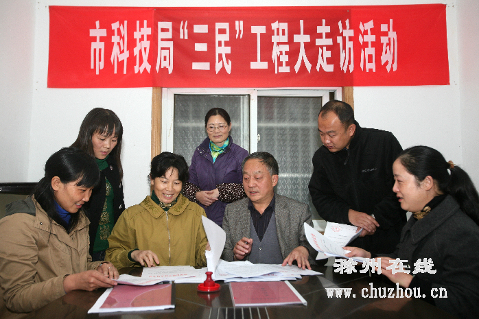 市科技局认真贯彻“三民”工程大走访活动中群众反映的17个重大共性问题解决方案推进(过堂)会精神,深入琅琊区文德街社区自查“四包三推一联系”机制建设情况,推进“三民”工程大走访活动进程,受到群众欢迎。图为市科技局走访小组负责人与社区签署“四包三推一联系”协议书。李晓村摄