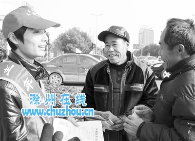本网讯12月2日是全国交通安全日,滁州市交警支队结合“三超一疲劳”整治活动,在全市范围内开展“文明交通,告别陋习”的安全宣传。