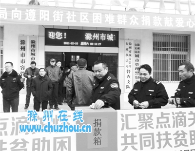 本网讯12月10日,市城管执法局组织广大干部党员向遵阳社区困难群众爱心捐款3656.7元,在寒冷冬日里掀起阵阵暖流。