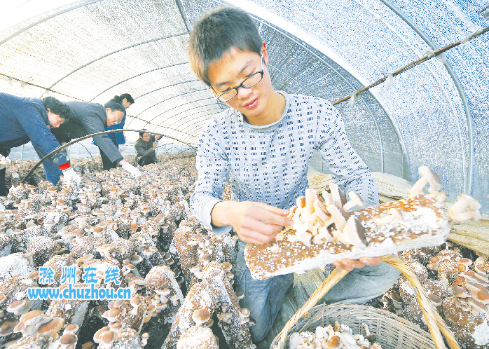 南谯区沙河镇油坊村青年赵小明,高中没毕业就弃学还乡。为改变贫困状况,当时仅十几岁的小明前往蚌埠学习蘑菇种植技术。掌握了栽培要领后,小明决定回乡创业。在父母支持下,他东凑西借了20万元,建起了13个大棚。几年间,赵小明的蘑菇种植势头越来越好,年获利近10万元。 记者 王家国 摄