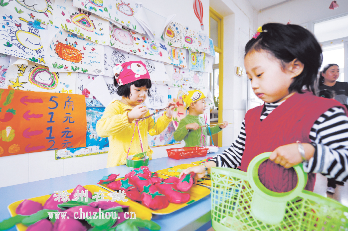 图为娃娃们在玩买菜、卖菜游戏。记者 计成军摄