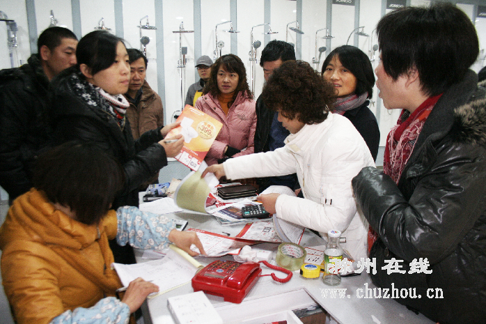 本网讯九牧集团首家旗舰店于12月16日在滁城投入试运营,作为首次入滁的“见面礼”,九牧旗舰店将赠阅2012年全年《皖东晨刊》予广大消费者。凡购买商品达1000元者,均可获赠2012年全年《皖东晨刊》,对折与特价商品亦可同时享受,活动将持续至2012年1月16日。图为工作人员正在登记客户资料确保报纸准确投递。