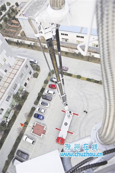 “你已升到53米高空,感觉如何?”张俊警士长通过平台的话筒向记者喊话,睁开眼睛,整个滁城都在眼底,远处的道路成了网格状,高高低低、错落有致的楼房就在脚下,低头一探,下面的人越发“小”了。此时,记者的双腿不听使唤了,开始不停地打哆嗦,头皮发麻,只好双手死死抓住护栏,别说救人了,连动都不敢动……