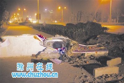 交警告诉记者,驾驶燃油助力车的男子是付某,当夜23时许,他骑车沿丰乐大道由北向南行驶。行至事发地点,径直撞上非机动车道上的矮墙。由于冲击力巨大,坚硬的墙体硬生生被撞出一道豁口。燃油助力车当场散架,付某不幸两腿骨折、血流不止、当场昏迷。