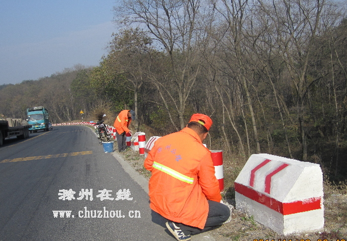 针对磨盘山段道路落差高、坡长弯急的特点,为确保公路的安全、美观,定远公路分局利用粘贴反光膜、刷新示警墩(桩)等手段对磨盘山段的305块傍山险道示警墩(桩)全部进行翻新。翻新后的示警墩(桩)醒目、美观、顺畅,为公路交通事故重点防范路段安全、舒适行车提供了有效保障。