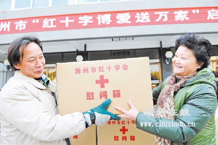 当日,滁州市“红十字博爱送万家”启动仪式在滁城启动。在启动仪式上,市红十字会给来自滁城和明光、南谯等县(市、区)的困难群众代表发放了过冬用的棉衣、棉被、大米、食用油等物资。今年,滁州市红十字会精心准备,自筹了价值10万元的过冬衣物、食品、药品等,将在春节前全部发放到各困难家庭中。据悉,该项活动在滁州已经连续开展了12个年头,取得了良好的社会效益,已成为我市社会救助工作中的响亮品牌。记者 计成军 摄