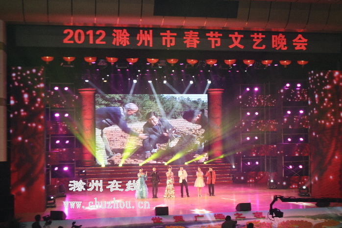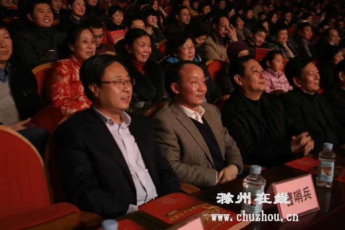 本网讯玉兔呈祥辞旧岁,龙腾四海贺新年。1月16日晚,滁州大剧院内流光溢彩、高朋满座,大红灯笼和盛放的鲜花散发出浓浓的新春喜气。由市委市政府主办,市委宣传部、市文广新局、市广播电视台、市演艺公司等部门和单位承办的2012年滁州市春节文艺晚会在这里隆重上演。市领导韩先聪、江山、张裕发、李耀才、何希勇、徐发成、戴启远、曹哨兵、卢兴全、张尽忠、秦钢昌、孟桂琳、汪建中、刘明平、查镜波、魏国炳等和现场千余观众一道,共同欣赏了一台精彩纷呈的文化盛宴。