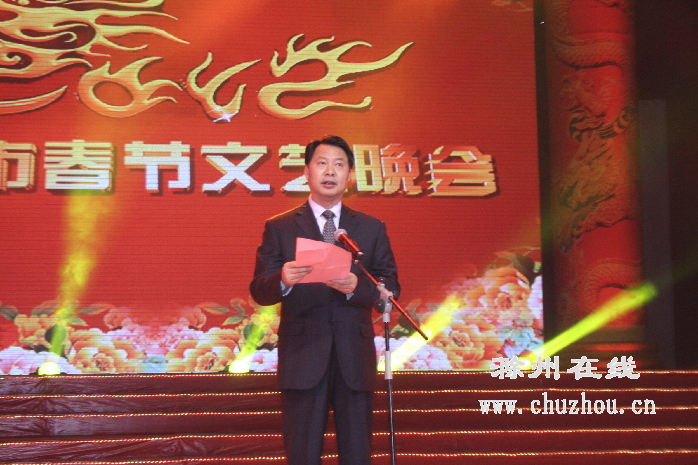 市长江山在晚会上作新春致辞。他代表市委市政府向滁州450万父老乡亲致以节日问候和新春祝福。江山在讲话中简要回顾了2011年我市经济社会发展取得的骄人业绩,并展望了新一年的美好蓝图。他说,2012年我们将紧紧围绕“科学发展”和“转型升级”两大要求,坚持工业化、城镇化和农业现代化同步,着力示范区和“大滁城”两大建设,坚持稳中求进,冲刺千亿滁州,建设更加美好的明天。
