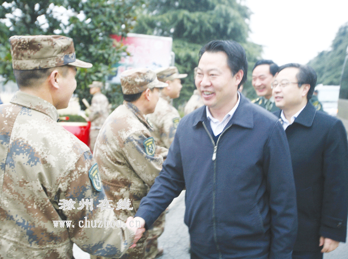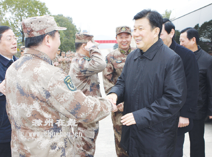1月17日下午,市委副书记、市长江山,市委常委、市委宣传部部长曹哨兵,市委常委、滁州军分区司令员卢兴全,滁州军分区政委赵宁元,市政府秘书长王跃率领市直有关部门负责同志,驱车先后赶赴安徽预备役师炮兵团、73091 部队和73658 部队,向他们致以节日问候、新春祝福,并向三支驻军分别赠送慰问金。