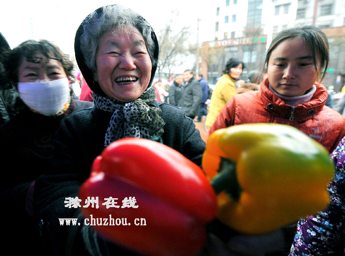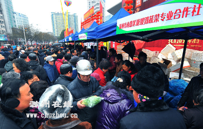 嫩绿的芹菜、红彤彤的西红柿、香喷喷的板鸭……昨日,滁州市首届“菜篮子”大拜年活动,在人民广场如约开场,60多种近10万斤新鲜蔬菜和副食品均以“地头价”和“出厂价”出售,引得市民纷纷争相抢购,现场交易一片火爆。举办方介绍,仅当天上午,现场10万斤直销菜便卖个精光。