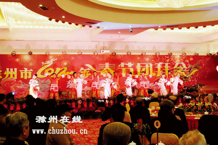 本网讯玉兔辞旧岁,金龙迎新年。1月19日上午,滁州国际酒店三楼会议大厅洋溢着一派喜庆祥和的节日气氛,市委市政府在这里举行2012年春节团拜会。市委书记韩先聪致辞,市长江山主持团拜会,市政协原主席江俊,市领导张裕发、李耀才、袁华、何希勇、黄秀生、徐发成、戴启远、章义、曹哨兵、卢兴全、王图强等出席团拜会。
