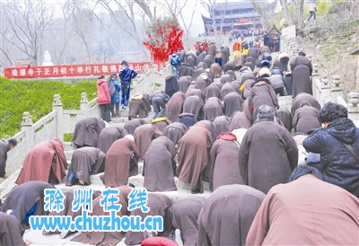 滁州:礼敬佛陀 祈福琅琊 2012-02-02 08:00 记者 王家国 摄 我要评论0 扫描到手持设备 字号: 居士们有序走进大雄宝殿。 居士们朝山跪拜,向琅琊寺前进。 琅琊寺僧人引领居士开展敬佛活动。 微笑 流汗 难过 羡慕 愤怒 流泪 复制网址 打印 收藏 分享到: 0