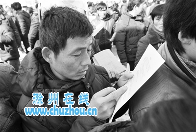 一位求职者在仔细阅读用人单位提供的待遇说明。记者王家国摄