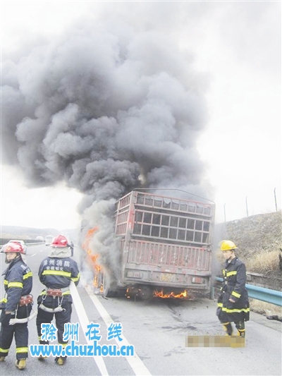 几分钟后,滁州交警高速公路四大队民警闻讯赶到,无奈大火熊熊、浓烟滚滚,只得疏导交通,引导车流靠左迅速安全通过。此过程中,轮胎燃烧时“砰砰”的爆炸声,把民警吓了一跳。