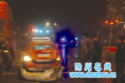记者从滁州交警二大队获悉,第一个事故现场位于滁城中都大道的会峰园小区路口。当时,这辆牌照为“鲁D5W***”的“桑塔纳”轿车,沿中都大道由北往南狂奔,行至会峰园小区路口时,撞上一辆“皖M81***”出租车。事故发生后,“桑塔纳”没有停车,径直朝前开去。出租车驾驶员和2名乘客吓得不轻,随即驱车尾随。