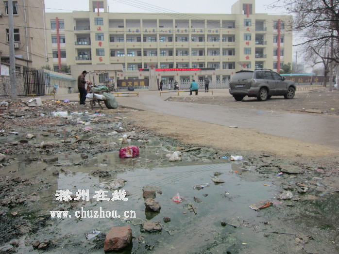 2月28日,滁城曹先生向滁州在线 • 皖东晨刊反映,滁城琅琊路小学门前污水横流,1700名师生每天闻臭而过。听说这是旁边一家正在建设的菜场堵住了下水道引起的,希望相关部门前往调查处理。