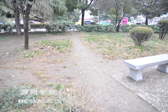 市民政局附近的游园里,绿化带被踩踏出一条条小径。