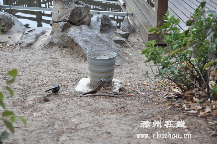 滁城清流公园里,一些彩灯被破坏,只剩下孤零零的底座。