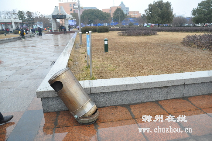 滁城人民广场,垃圾桶无端“惨遭毒手”。