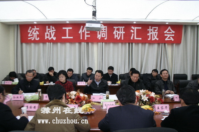 在认真听取工作情况汇报后,江山对我市统战工作取得的成绩给予充分肯定。他说,近年来,统一战线工作在推动滁州经济社会发展,促进社会和谐进步中发挥了重要的作用,做出了显著的贡献,主要表现在六个“好”。一是统得好,统战部门在市委领导下发挥了积极、有力、有效的作用;二是合得好,各民主党派和无党派人士在政协党组和统战部门的组织下,党派内部进一步团结,党派合作进一步加深,执政党和参政党联系更加密切;三是干得好,各个党派立足岗位,结合自身工作,为滁州奋力冲刺“全省第一方阵”做出了重要贡献;四是建得好,各个党派参政议政能力不断提升;五是争得好,各民主党派牢固树立争先进位意识,在向上争支持,向下抓服务方面,取得明显成绩;六是管得好,自我管理水平不断提高,在推进全市经济社会发展中发挥了重要作用。