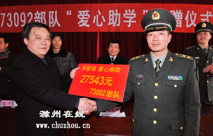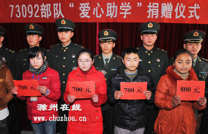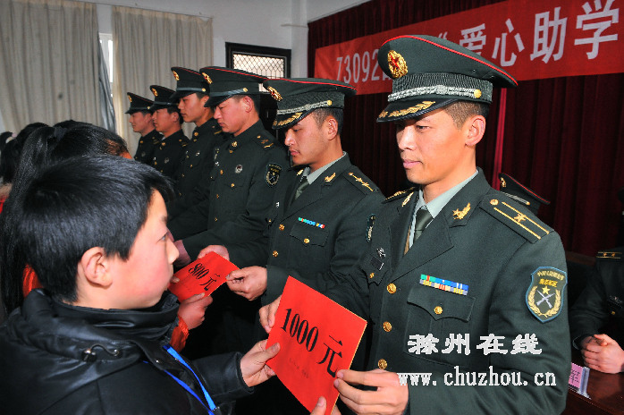 滁州:传承雷锋精神 捐助贫困学生 2012-03-09 08:00 记者 王家国/图 曹建中/文 我要评论0 扫描到手持设备 字号: 3月7日下午,驻滁某部解放军官兵代表先后来到驻地附近的滁州七中、滁州九中,将42543元爱心助学款送到60名优秀贫困学生手中,表达对“第二故乡”的深情厚谊。解放军官兵代表表示,要做传承雷锋精神的践行者,长期捐助这些贫困学生,同时勉励受资助学生刻苦学习,增长本领才干,磨练意志品质,用知识改变命运。 微笑 流汗 难过 羡慕 愤怒 流泪 复制网址 打印 收藏 分享到: 0