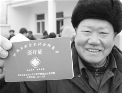 山东省郯城一农民展示刚领到的新农合医“一卡通”。(资料图)