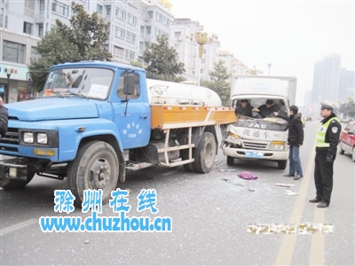 报料内容:近日,滁城南谯北路南大桥附近,两辆施工车发生追尾。