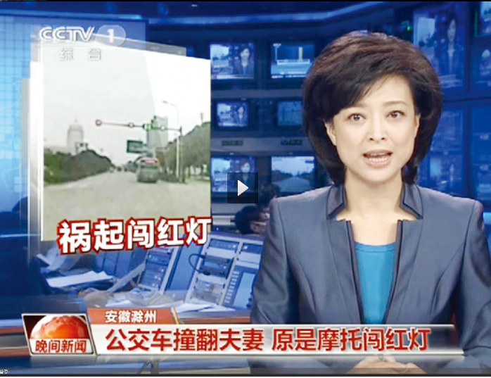 《夫妻骑摩托闯红灯,被公交撞飞》,昨天,滁州在线 • 皖东晨刊对发生在滁城会峰路与全椒路交口的一起车祸进行报道。3月11日,央视也对此事给予关注,CCTV-1、CCTV-4、CCTV-13等频道,分别在不同时段重点报道,并发出警示:“驾驶车辆时,切不可抱侥幸心理,麻痹大意,漠视安全。”