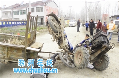 本网讯近日,来安县人李某骑摩托车带着妻子一路行驶,由南向北至张山乡一十字路口时,只因一时分神,竟与一辆由西向东路过的拖拉机迎头撞上。当场,摩托车撞了个倒栽葱,车头深深地插进拖拉机内,李某与妻子则因巨大的惯性被甩进四五米远的水沟里。