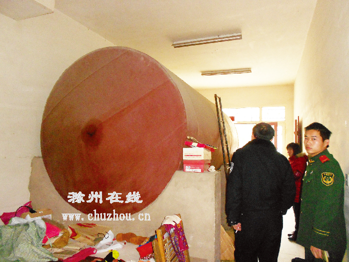 在天长市大通镇,检查人员发现居民朱某在家中非法经营、存储油气,还用一根简易的塑料管分装液化气,该“窝点”附近都是居民区,一旦发生爆炸,后果不堪设想。检查人员依法对其进行了5000元罚款并没收了6个油桶、360公斤油及其他分装工具。另外,消防部门还对此“窝点”进行了临时查封。
