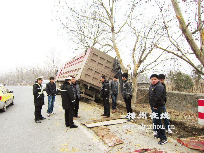 接到举报后,路政执法人员立即驱车赶赴现场,在事故地点周围设置警示标志,并联系养护单位机械到场,将倒伏在公路上的行道树予以清除。随后,路政执法人员还帮助车主联系吊车、拖车,将出事车辆拖离现场,第一时间确保公路的安全畅通。经过现场勘验,一辆解放牌大货车由定远拉沙石到滁州,因避让对面来车操作不当,导致车辆侧翻于公路路肩上,共损坏路肩40平方米、道口示警桩2个、落叶乔木2株。在制作完相关法律文书后,路政执法人员及时向当事人下达了《公路赔(补)偿通知书》。