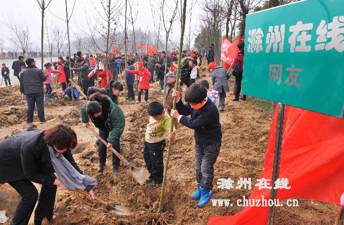 昨日上午,位于滁城清流中路与黄山南路交叉口东南角菱溪湖水系旁人头攒动,以“营造绿色家园,创建国家园林城市”为主题的全民义务植树活动开锣。有的挖树穴、有的搬树苗、有的来浇水、有的忙培土,仅一个多小时,市直单位职工、网友、在校大学生等千余人的植树大军种下了各类树木1200多株。