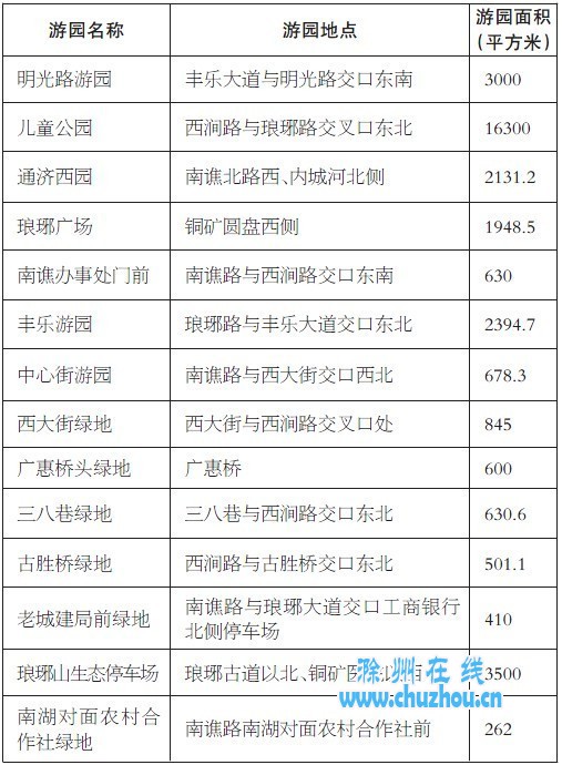 在介绍完东北片区和西南片区后,本期将向读者展现的西北片区,即南谯路以西、琅琊大道以北的区域。据统计,该区域共有游园14个,绿地面积33.8万平方米。该区域游园大多为2009年滁州申报省级园林城市之前建设的游园,多位于滁城老城区,而最新的游园是2011年建设的明光路游园和改建的儿童乐园。